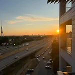 Krasta Home Apartament Free Parking With City & River View 里加位于Latgales priekšpilsēta区,距离Bastejkalns Park5公里.酒店设施丰富多彩,其包括保险箱 和24小时保安服务. 这套公寓一共有1间卧室,配备阳台,梳妆室 和沙发,设有配电热水壶,冷冻机 和烤箱的设施齐全的厨房.